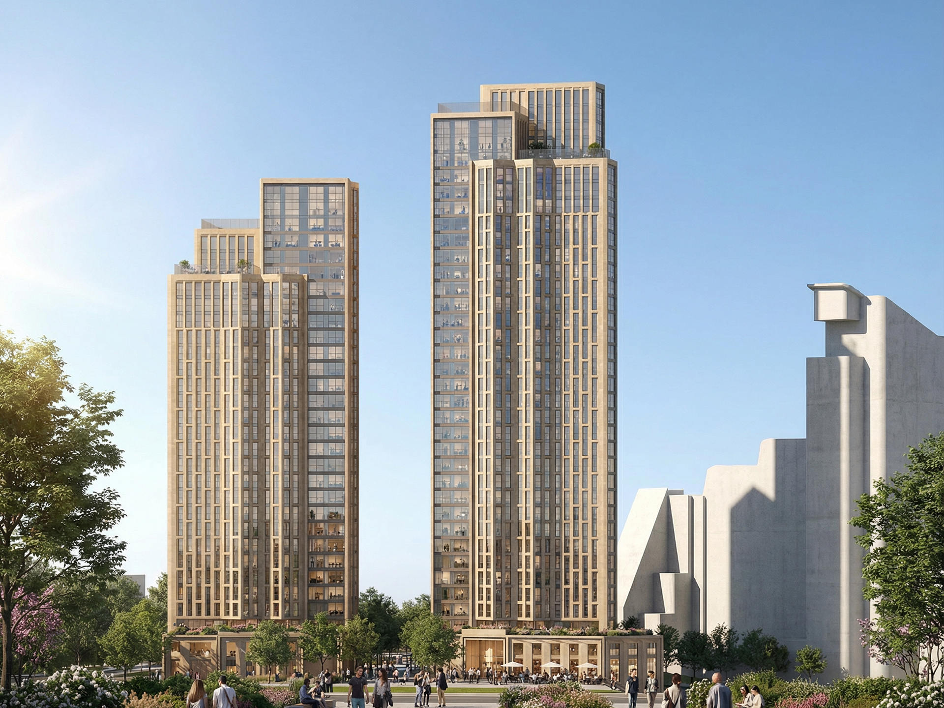 Sustainable, high-density housing maximising views on the edge of the Olympic Park