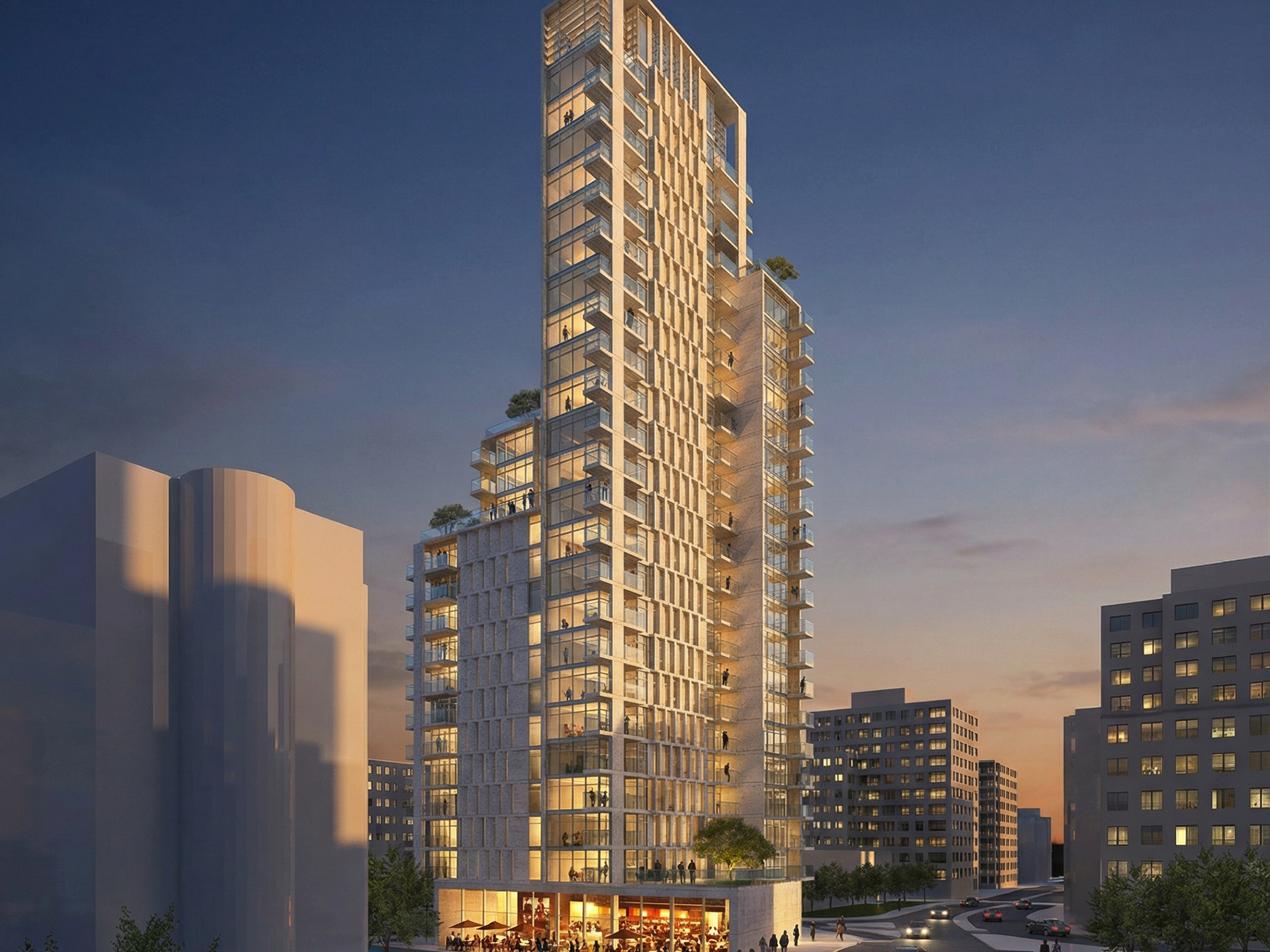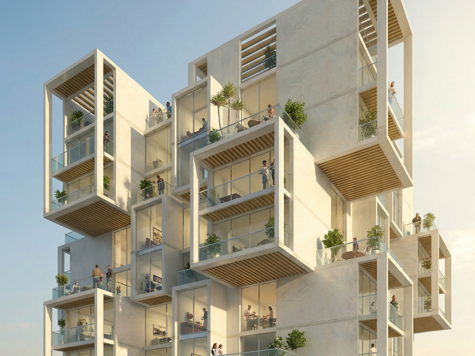 Climate responsive mixed-use development with landscaped courtyard and roof