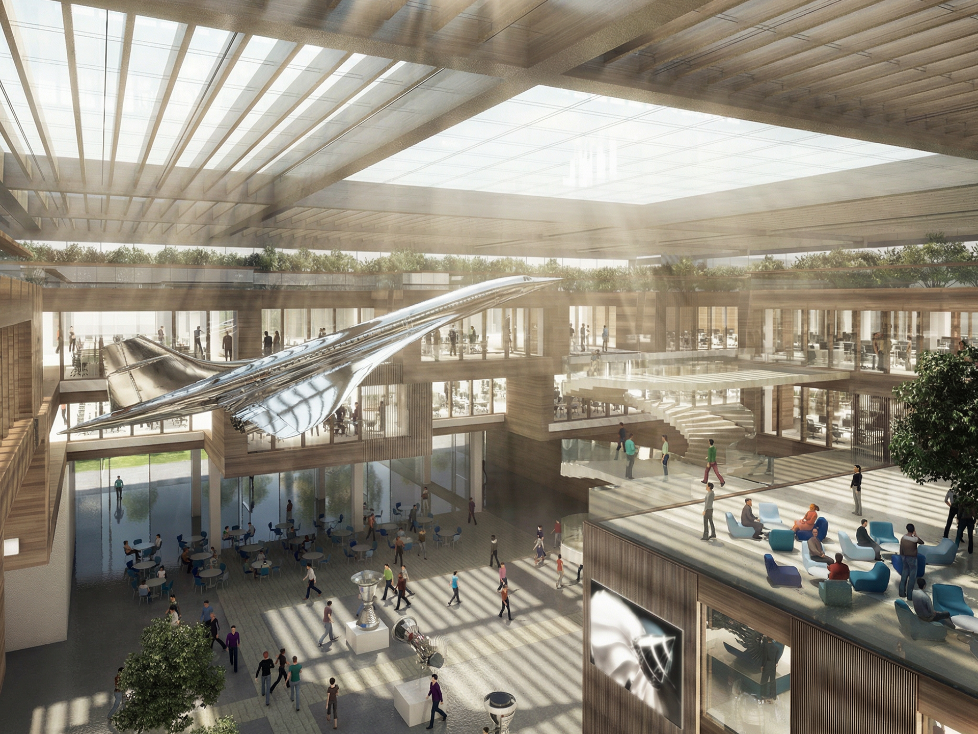 Sustainable landscape inspired design for a collaborative research laboratory and workspaces centred around a multi-functional communal atrium