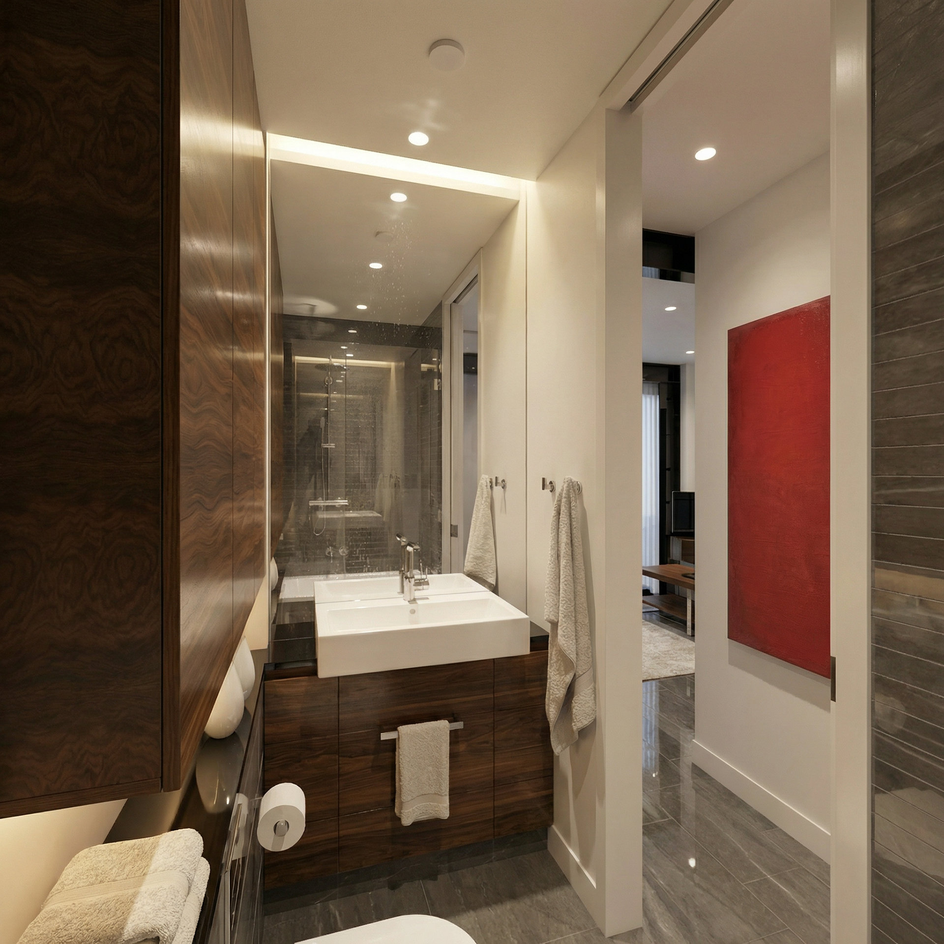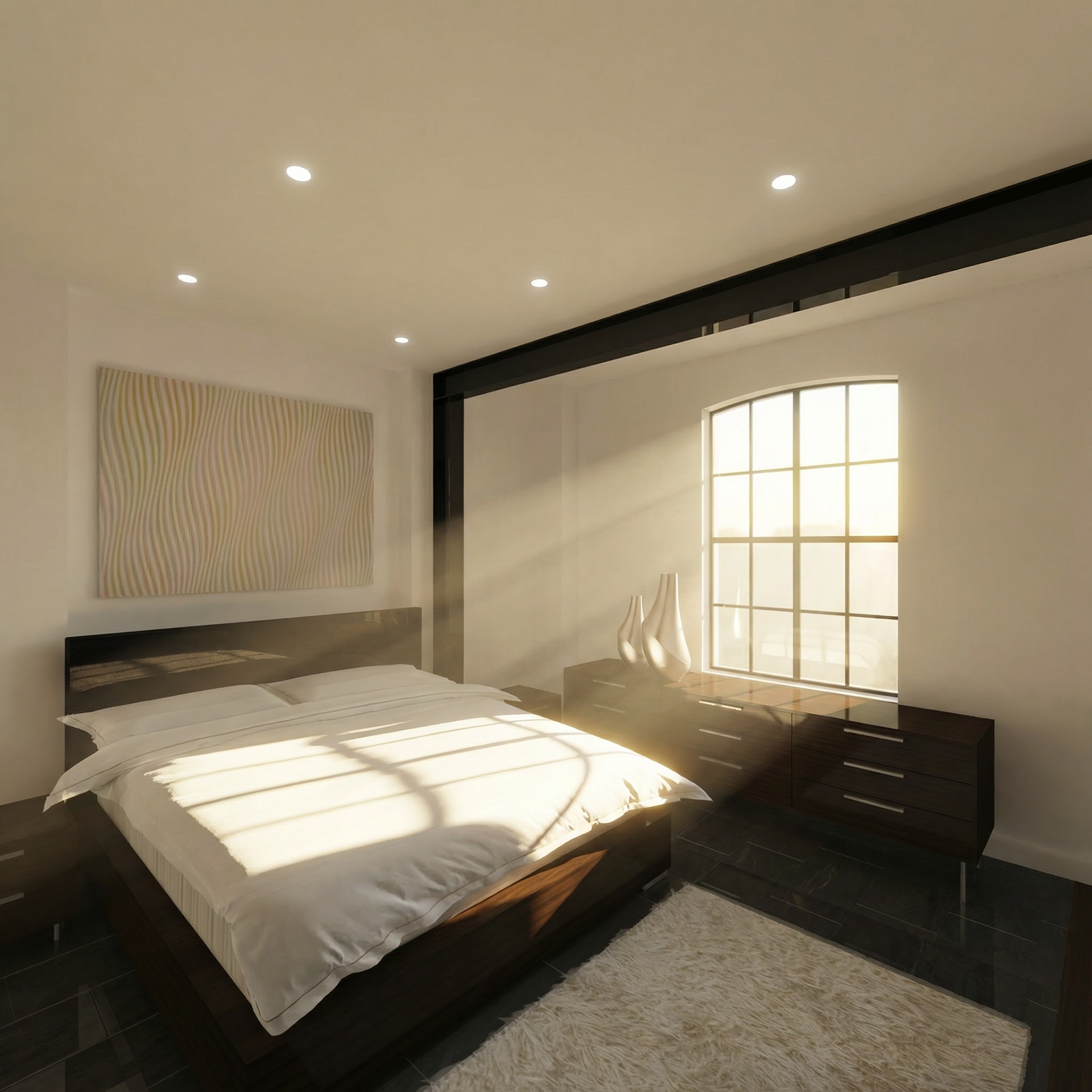 Under-utilised spaces are reconfigured to double the extent of available storage area and new acoustically isolated ceilings are specifically designed to dramatically reduce the sound transmittance from the flat above, whilst also providing enhanced lighting using LED fixtures and additional thermal insulation to improve on energy performance of the property.